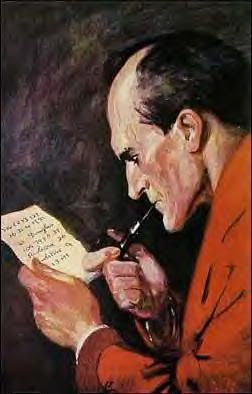 Holmes is a mass of contradictions: a “thinking machine” (SIGN) with “art in the blood” (GREE) and a dash of the knight-errant. A “connoisseur of crime” (SIGN), Holmes’s interest in a case is determined more by the challenge it presents than the magnitude of the offense or the rank of the people involved. Holmes is over six feet tall, thin, dark-haired, aquiline in profile, and has gray eyes; he can alter or conceal all of these distinguishing features with uncanny skill when in disguise. While on a case he frequently skimps on food and sleep. Between jobs he’s prey to boredom, restlessness, and depression, which for a while led to thrice-daily injections of cocaine and, less frequently, morphine, a habit he eventually gave up with Watson’s help. Working or not, he smokes like a chimney. In spite of all this he is surprisingly strong (in “The Adventure of the Speckled Band” he straightens a bent poker with his bare hands) and adept in boxing, fencing, and a Japanese martial art called baritsu.* However, his favored pastimes are cerebral. He is a polymath who initially appears to be interested only in fields that are applicable to his profession, namely chemistry, biology, and criminology. This impression is contradicted by later stories in which he displays an interest in history, literature (judging from his many apt quotations), philology, music (he plays the violin—a Stradivarius he found in a pawnshop—and attends concerts), and art.